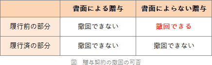 書面によらない贈与は、各当事者が解除をすることができる。ただし、履行の終わった部分については、この限りでない。